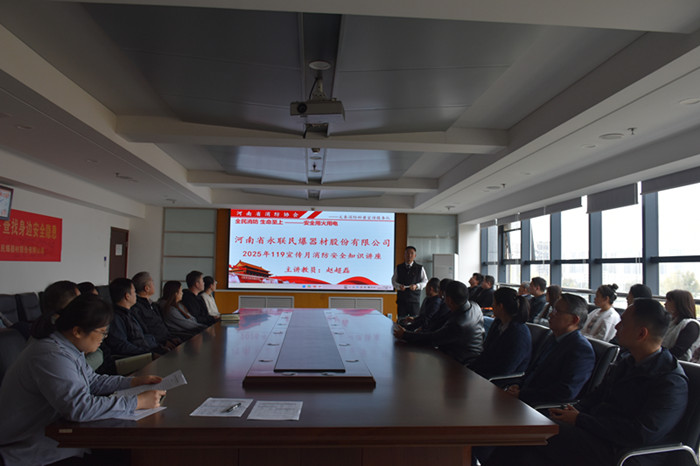 公司特邀河南省消防協(xié)會趙超磊教員為全體員工進行了消防安全知識專題講座。趙教員結合民爆行業(yè)特性及近期典型火災案例,生動細致地講解了火災預防、初期撲救、火場自救及各類消防器材的正確使用方法等關鍵知識,使“預防為主、生命至上”的安全理念更加深入人心。